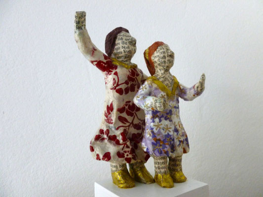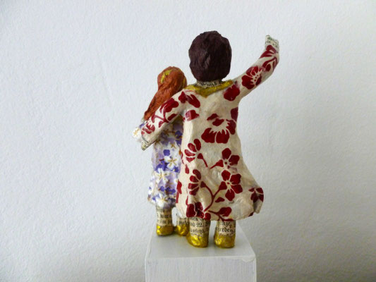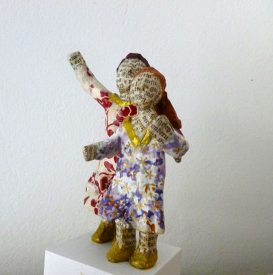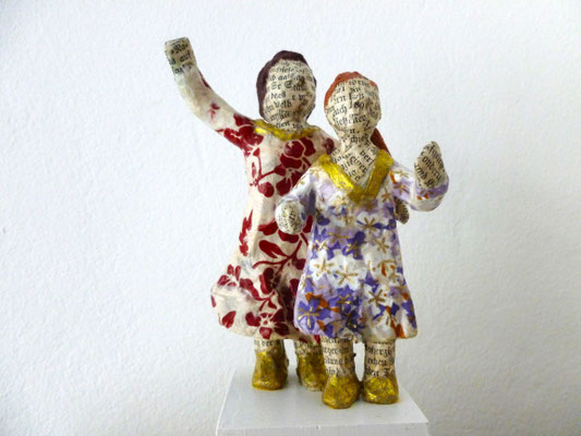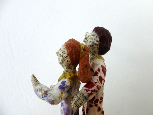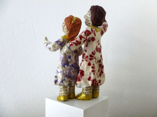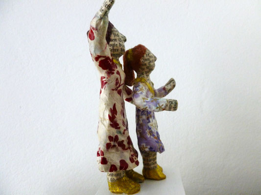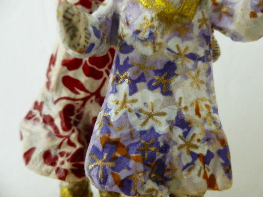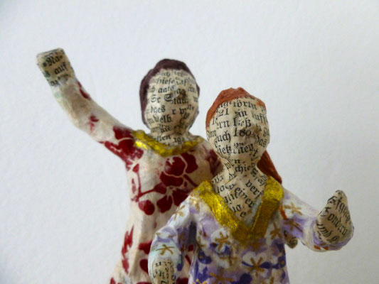 Schutzfirnis bestrichen. Die beiden Figuren sind auf einen weiß lackierten Holzsockel mit den Maßen 5 x 5 x 5 cm montiert. Selbstverständlich handelt es sich um ein