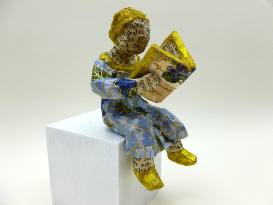 Reading in the sun at summer, 10,5 cm H, 6 cm L, 6 cm T / Heike Roesner-2024